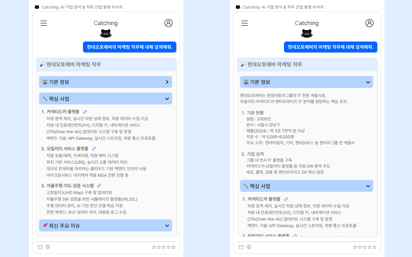 Cat-ching 확장 프로그램으로 회사 정보·뉴스 분석·경쟁사 파악을 자동으로 정리하세요.